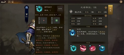 至于武将属性技能坚盾,它能让曹仁的全属性增加1.5%,随着技能等级的提升,带来的增益效果也越发高,等级2时,全属性提升至2%,同时生命上限也会增加2%,激活条件为武将5星和兵书7阶,等级3时,全属性提升至2.5%,生命上限提升至2.5%,并且格挡几率增加7%,此时需要武将6星和兵书12阶才能激活,而等级4时,全属性提升至3%,生命上限提升至3%,格挡几率提升至8.5%,还额外增加了暴伤减免12.5%,全方位强化了曹仁的生存能力和战斗续航能力。