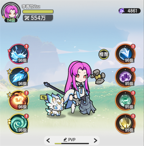 技能:角色可以带四个主动技能和四个被动技能,通过女神许愿获取,各职业可根据技能特性搭配各种BD。转职有职业等级要求,可以通过抽取技能提高职业等级,获取更多的基础属性。目前总共有四转,一转开服选择,二转44级山之国5转职,三转84级泽之国8转职,四转104级龙之国10转职。