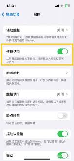 4. 关闭“便捷访问”:在“触控”页面中,找到“便捷访问”选项,将其开关关闭。关闭后,单手模式将不再可用。