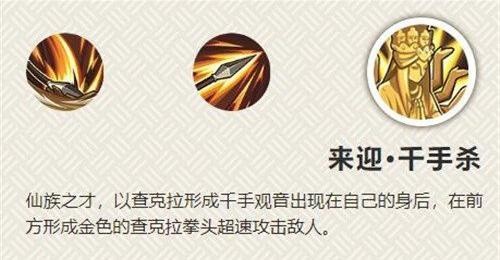 仙族之才也是佛族之才,直接使用时千手杀,在被动防反的明王触发时使用奥义技能则会发动怒目金刚。