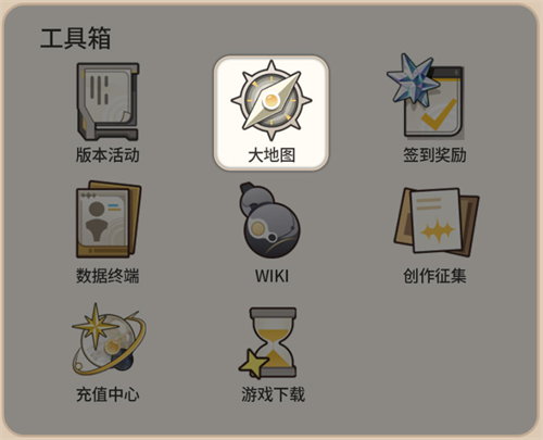 可以在库街区鸣潮版块的首页上,打开工具箱,然后点击版本活动旁边的大地图图标,就可以进入地图页面了。